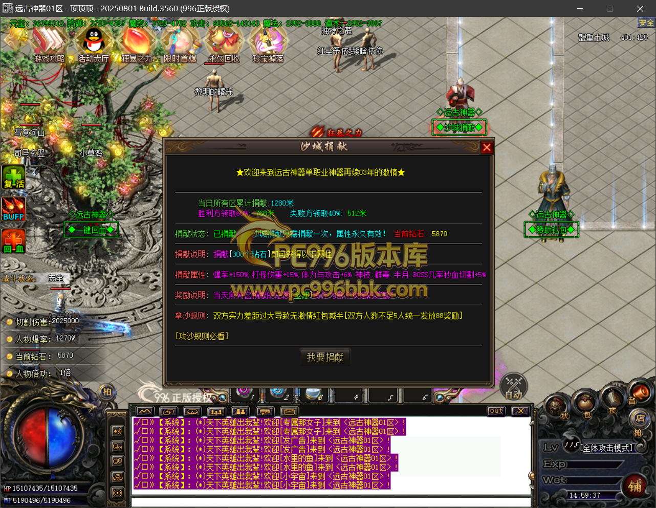称号使者:提供人物称号提升.需要(元宝+黄金叶+积分).可提升到(至尊傲天战圣)