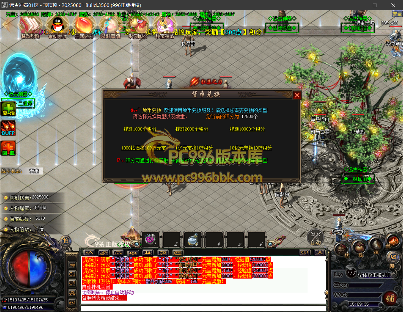 货币兑换:提供元宝兑换积分.钻石兑换元宝