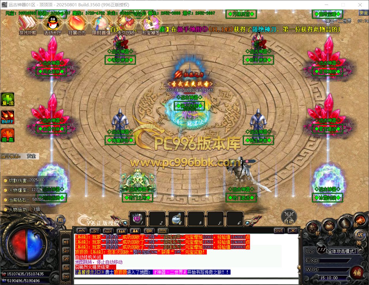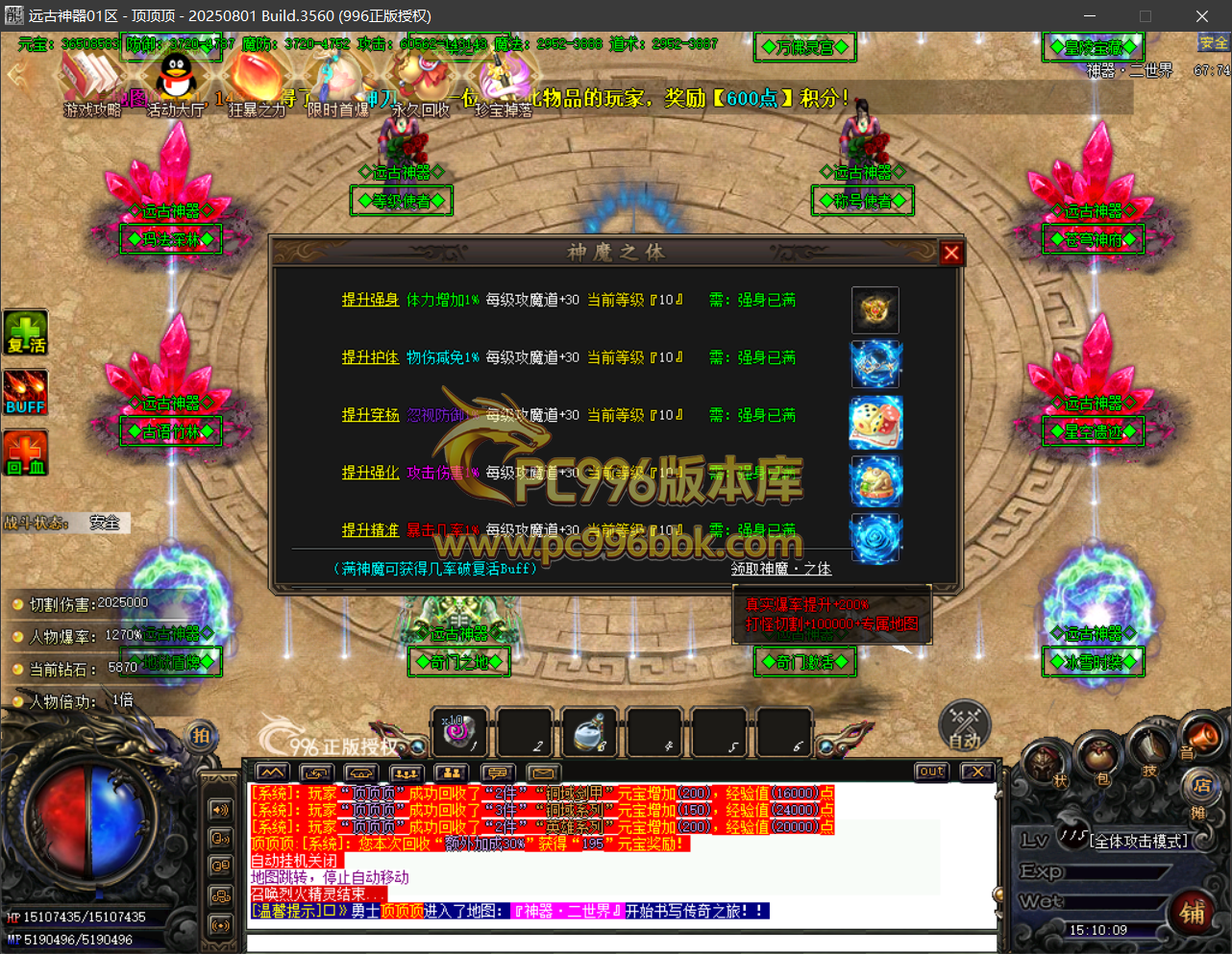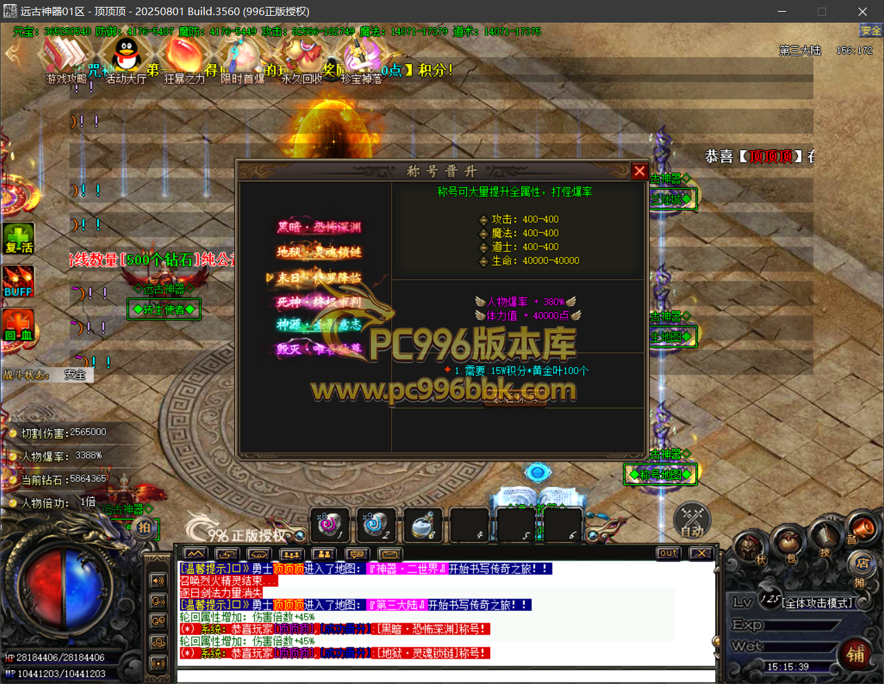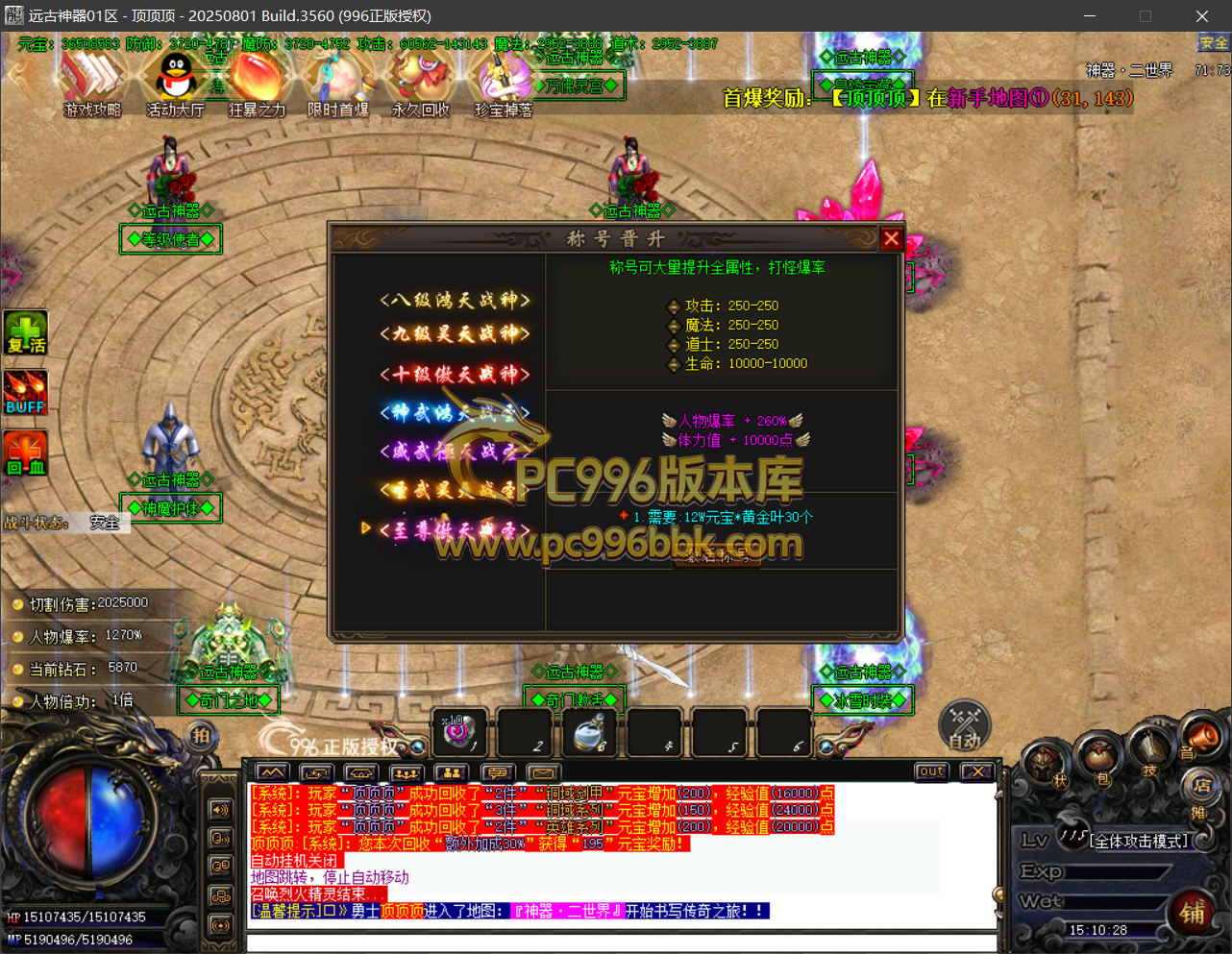 最终称号:提供人物称号提升.需要(钻石)提升到(全满·爆率使者)进入界面地图(至尊爆率:需要钻石提升称号(超级至尊爆率))