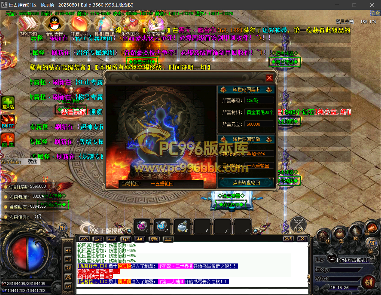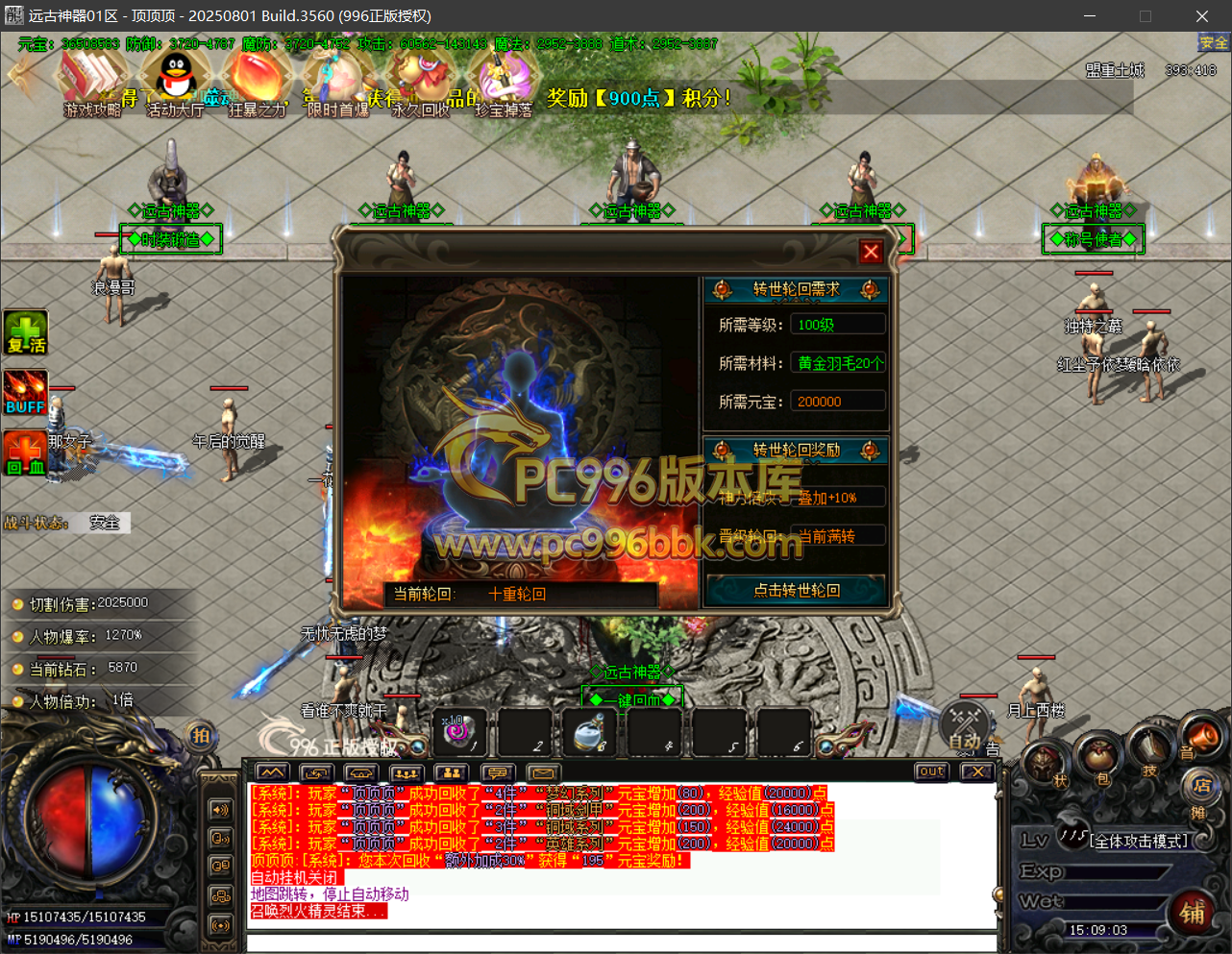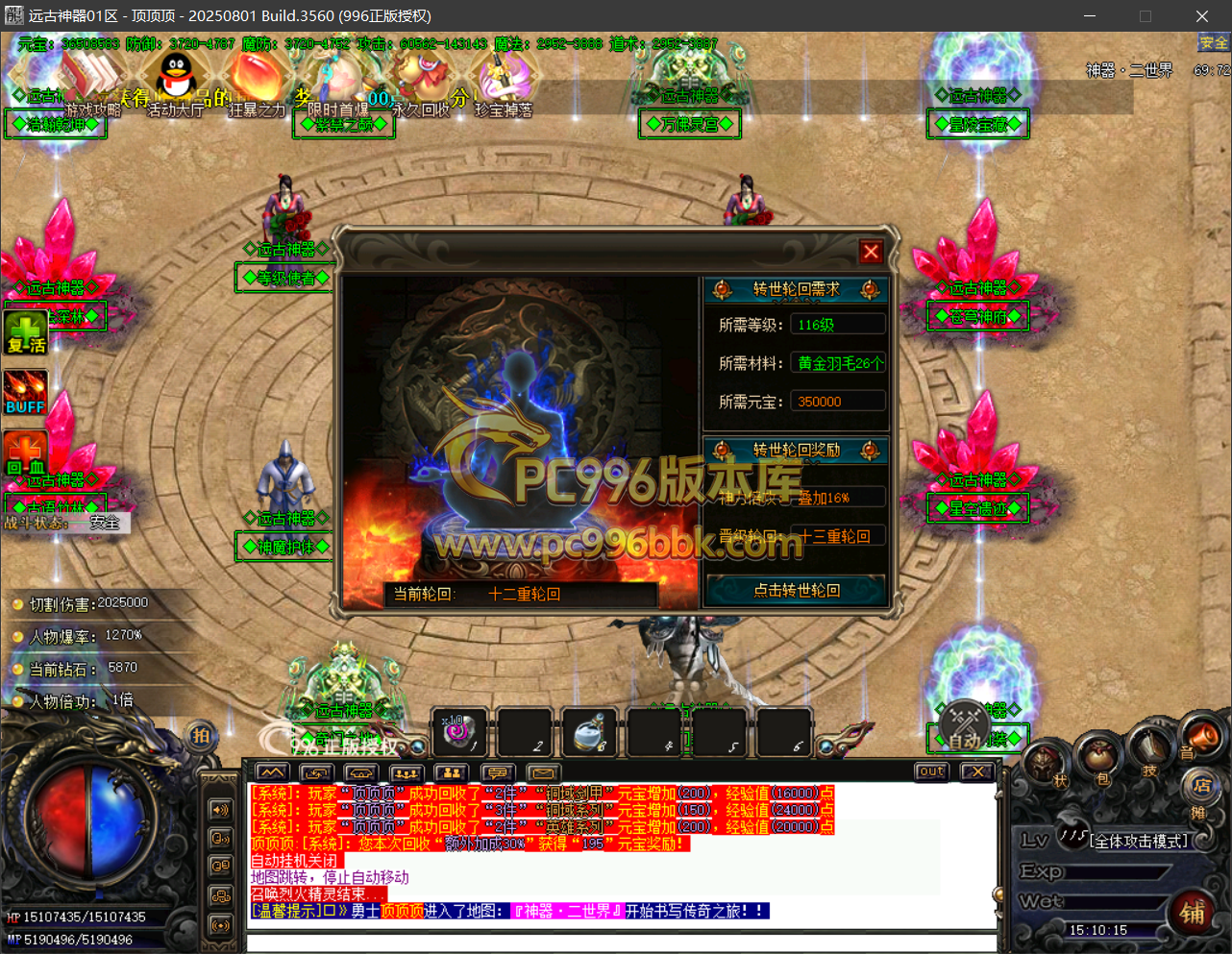 转生使者:提供人物转生11-15提升.需要(等级要求+黄金羽毛+元宝)