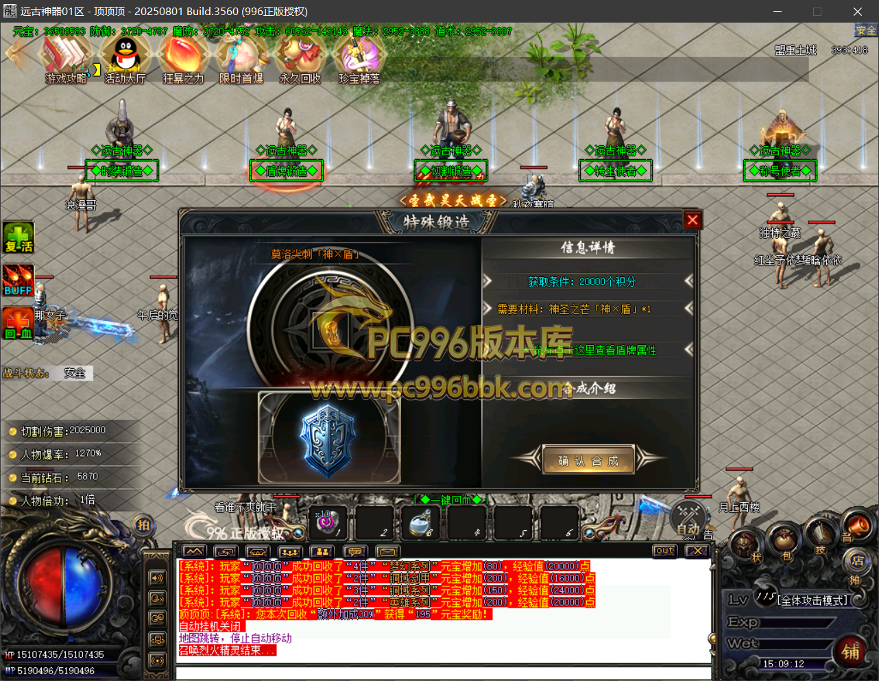 盾牌锻造:提供特殊盾牌锻造.需要(上级盾牌+积分)提升到(霸主·梵音【神佑】)